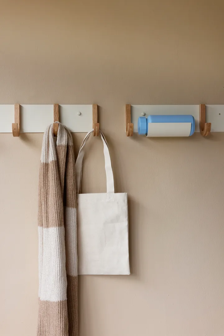 Jay vaaterekki 4 koukkua Design Lettersiltä on klassinen minimalistinen naulakko, valmistettu pulverimaalatusta teräksestä ja FSC-sertifioidusta tammesta. Se tarjoaa runsaasti säilytystilaa tilavan muotoilunsa ansiosta. Yhdistä useampi Jay vaaterekki lisäsäilytystä varten