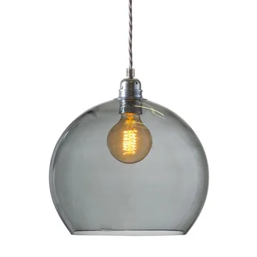 Ebb & Flown Rowan kattovalaisimessa klassinen suupuhallettu lasikupu on yhdistetty metallisiin yksityiskohtiin ja kierteiseen, tekstiilipäällysteiseen johtoon. Tuloksena on trendikkään teollisuustyylinen valaisin, jonka ulkonäköä on helppo muunnella erilaisilla lampuilla.