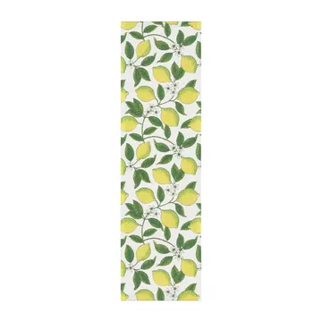 Citroner kaitaliina från svenska Ekelund on valmistettu GOTS-sertifioidusta luomupuuvillasta ja siinä on Betty Svenssonin suunnittelema kuosi. Keltäisten sitruunoiden koristama kaitaliina on piste i:n päälle katetussa pöydässä ja se voidaan asettaa suoraan pöytätasolle tai liinan päälle.
