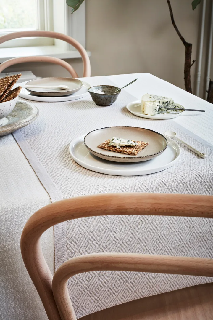 Gåsöga kaitaliina valkaisematon Ekelundilta on valmistettu GOTS-sertifioidusta luomupuuvillasta ja pellavasta, ja sen luonnollinen sävy on helppo yhdistää kodin muihin väreihin. Aseta Margareta Nyströmin suunnittelemalla kuosilla varustettu kaitaliina suoraan pöytäpinnalle tai yhdistele se pöytäliinaan luodaksesi kodikkaan tunnelman