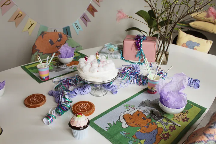 Safari tabletti 35x48 cm Ekelund Linneväveriltä on valmistettu ekologisesta puuvillasta. Tabletti kuuluu Bamse-kokoelmaan, jonka kuvion on suunnitellut Rune Andréasson. Yhdistä mieluiten muihin saman sarjan tabletteihin leikittelevän kattauksen luomiseksi