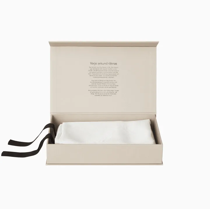 Eldstickan sammutuspeite 180x120 cm Eldstickan on tyylikäs ja turvallinen palonsuojausratkaisu, joka on valmistettu lasikuidusta. Se suojaa tehokkaasti tulipaloa vastaan ja sen muotoilu mahdollistaa näkyvän sijoittamisen kotiin ilman, että sisustus kärsii. Sammutuspeite on saanut huippuarvostelut testproffs.se:ltä ja Brandinfo.se:ltä, mikä takaa korkean laadun ja turvallisuuden