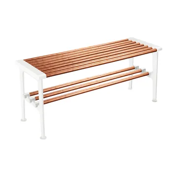 Nostalgi penkki 100 cm Essem Designilta on valmistettu kierrätetystä alumiinista ja pyörötangosta, mikä tekee siitä kestävän ja tyylikkään. Klassisen Nostalgihyllyn inspiroima istuinpenkki on joustava lisä eteiseen: se toimii erinomaisesti istuimena kenkien vaihtoon tai osana pidempää penkkiä välikiinnikkeiden kanssa. Ajattoman muotonsa ja vakaan rakenteensa ansiosta Nostalgi penkki sopii sekä moderneihin että klassisiin ympäristöihin ja on helppo mukauttaa tarpeiden mukaan.