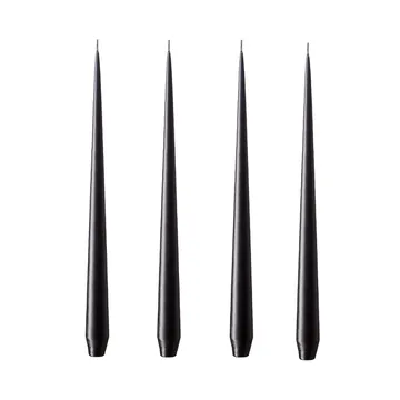 Mustat kynttilät tanskalaiselta merkiltä Estrik & Erik. Kynttilät sopivat, kun haluat antaa neutraaliin kattaukseen dramaattisemman ilmeen tummemmilla yksityiskohdilla. Kynttilät on käsivalettu ja ne kapenevat ylhäältä tyylikkäästi. Alaosa on kartiomallinen sopimaan useimpiin kynttilänjalkoihin — korkeisiin ja mataliin. Saatavilla mattapintaisena tai lakattuna.