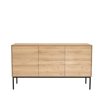 Whitebird sideboard från Ethnicraft on tyylikäs kaluste, joka yhdistää kontrastoivia elementtejä pehmeillä, pyöreillä jaloillaan ja graafisilla suorilla linjoillaan. Design tarjoaa sekä käytännöllistä säilytystilaa että visuaalista tasapainoa huoneeseen samalla kun se toimii ajattomana osana sisustusta