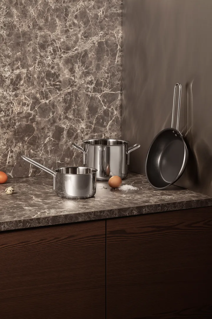 Eva Trio Stainless Steel kattila Eva Solo on valmistettu 90 % kierrätetystä ruostumattomasta teräksestä. Kestävä rakenne kestää päivittäistä käyttöä ja kapseloitu sandwich-pohja takaa tasaisen lämmönjakautumisen. Täydellinen pastan, riisin keittämiseen sekä kastikkeiden ja keittojen valmistukseen. Ole Palsbyn vuonna 1977 suunnittelema muotoilu varmistaa, että kattila sopii olemassa oleviin Eva Trio -kansiin