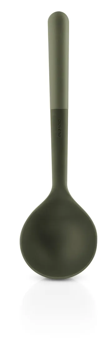Green tool -tarjoilulusikka 28 cm tanskalaiselta Eva Sololta on valmistettu muovista ja sen silikonipinnoite ehkäisee herkkien pintojen naarmuuntumista. Tilava lusikka kestää kuumuutta 250 asteeseen saakka ja sopii erinomaisesti pataruokien, riisin tai couscousin tarjoiluun