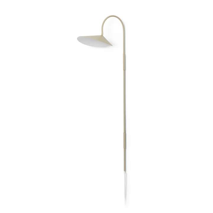Arum swivel tall -seinävalaisin on orgaaninen ja elegantti muotoilu, joka muistuttaa lehteä, joka roikkuu kaartuvasta metallikaaresta. Varjostimen off-white-värinen sisäpinta luo pehmeän ja tasaisen valon, joka leviää miellyttävästi huoneeseen. Lampun varsi on varustettu kääntyvällä kiinnikkeellä, jonka avulla lamppua voi kääntää kaikkiin suuntiin valon säätämiseksi tarpeen mukaan. Käytännöllisellä kangaspäällysteisellä johdolla ja sisäänrakennetulla katkaisijalla varustettu lamppu toimitetaan seinäkiinnikkeen kanssa, mikä tekee asennuksesta helppoa ja joustavaa