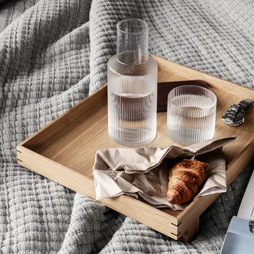 Bon puutarjotin small Ferm Livingiltä on kaunis puutarjotin, jossa on selkeitä japanilaisia vaikutteita, mikä antaa yksinkertaisen ja ilmavan ilmeen. Suunniteltu sekä koristeelliseksi että toiminnalliseksi, tarjottimessa on näkyvät liitokset kulmissa ja se on valmistettu massiivisesta tammesta kestävyyden ja ajattoman tunteen takia. Käytä sitä tarjoilualustana aamiaisella, yöpöytänä iltalukemiselle tai tyylikkäänä laskutasona eteisessä. Monikäyttöinen yksityiskohta, joka kohottaa kodin arkihetket.