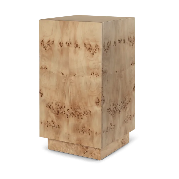 Burl Side Table jalusta Ferm Livingiltä on valmistettu kauniisti kuvioidusta, FSC™-sertifioidusta visakoivusta. Pöytä on monikäyttöinen ja sopii sekä yöpöydäksi että sivupöydäksi. Sen pylväsmäinen muotoilu ja piilotettu säilytystila säädettävällä hyllyllä luovat tyylikkään tunnelman mihin tahansa tilaan.