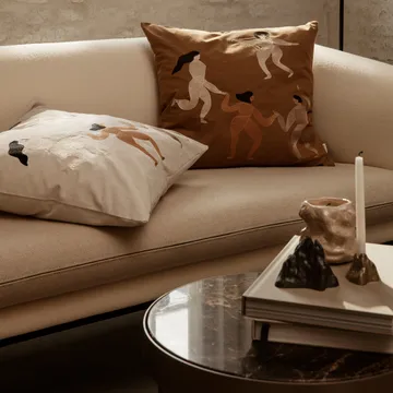 Free tyyny 50x50 cm Ferm Livingiltä, jossa iloinen kuvio tanssivista ihmisistä, kirjottu ylellisellä silkkilangalla. Piristä sohvaa tällä tanssivalla kuviolla ja täydentää voi mielellään muilla tyynyillä, jotka poimivat kirjonnan värit harmonisen kokonaisuuden luomiseksi