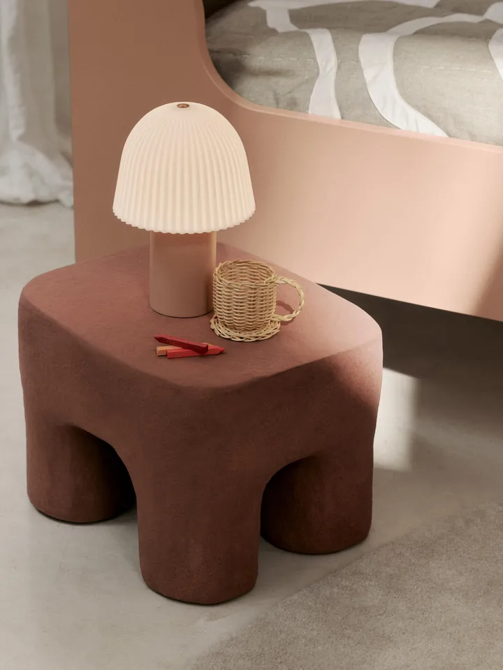 Frill kannettava lamppu Ferm Livingiltä on hurmaava pöytälamppu, joka yhdistää toiminnallisuuden ja leikkisän muotoilun. Se on valmistettu jauhemaalatusta teräksestä ja polyeteenistä, ja sen uurrettu varjostin tuo syvyyttä ja levittää valon pehmeästi. Täydellinen tunnelmavalo lastenhuoneeseen, akun kesto on jopa 80 tuntia matalalla kirkkaudella ja täyteen lataus kestää 5 tuntia.