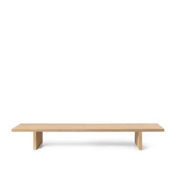 Kona display table sivupöytä från Ferm Living on japanilaisvaikutteinen sivupöytä, joka kunnioittaa yksinkertaista muotoa ja huolellista käsityötä. Valmistettu FSC™ mix -sertifioidusta tammiviilusta, se tarjoaa matalan ja ilmavan profiilin, joka korostaa kasveja, kirjoja ja rakkaimpia esineitäsi. Käytä sitä nojatuolin vieressä, pienenä sohva-pöytänä tyynyillä istuessa tai tyylikkäänä jalustana eteisessä. Tasapainoinen muotoilu tekee kodista helposti harmonisen ja kutsuvan.