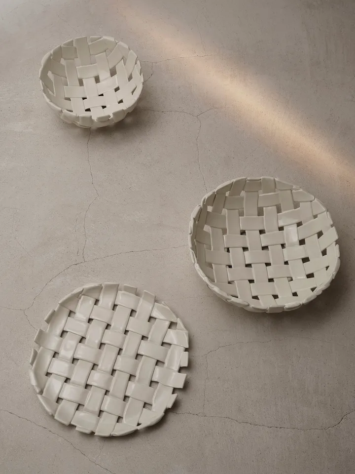 Plait kulho Ø30 cm Ferm Livingiltä on saanut inspiraationsa perinteisestä koriompeleesta. Jokainen kulho on käsivalettu ja käsin punottu keramiikasta, mikä tekee jokaisesta kappaleesta ainutlaatuisen ja taiteellisesti epätasaisen. Täydellinen esittelemään tuoreita hedelmiä tai leipää, ja tuo taiteellisen vivahteen keittiöön tai ruokailutilaan. Kulhon elegantti muotoilu ja huolellinen käsityö tekevät siitä ylellisen lisän kotiin