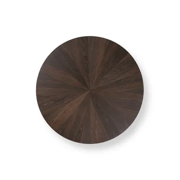 Post sohvapöytä Ferm Livingiltä on pyöreä sohvapöytä, jonka muotokieli ammentaa brutalismista: massiivinen, runsaan muotoilun ja yksityiskohtien ilmentymä. Pöytälevy ja kolme tukevasti muotoiltua sylinterimäistä jalkaa on valmistettu FSC™-sertifioidusta puusta, ja tammiviilusta tehdyt puuelementit ovat marquetry-tekniikalla luotu koristeellinen yksityiskohta. Post sohvapöytä toimii yhtä hyvin yksittäisenä katseenvangitsijana olohuoneessa kuin parina kahden koon yhdistelmänä taiteelliseksi kokonaisuudeksi. Kestävä ja veistoksellinen valinta, joka yhdistää muodon ja käsityön kotona.