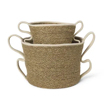Verso säilytyskori 2 osaa Ferm Livingiltä tuo kotiisi sekä toiminnallisuutta että tyyliä. Pulverimaalatusta teräksestä valmistetut, pehmeälinjaiset ja pyöristetyt korit luovat orgaanisen ilmeen ja pitävät samalla tavarasi siististi järjestyksessä. Säilytä niissä esimerkiksi lehtiä, torkkupeittoja tai suosikkikirjojasi. Korit voi pinota päällekkäin tai käyttää erikseen tarpeidesi mukaan. Verso-säilytyskorit edustavat pelkistettyä tyylikkyyttä parhaimmillaan ja tuovat kotiin lämpimän, kutsuvan tunnelman.