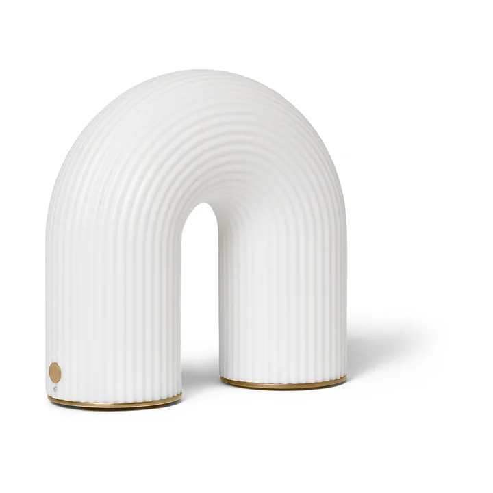 Vuelta portable pöytävalaisin Ferm Livingiltä erottuu veistoksellisesta kaaresta ja antiikkisista pylväistä. Valmistettu kestävästä muovista, se tarjoaa monipuolista valaistusta LED-valonlähteellä, joka antaa pehmeän, diffuusen hehkun. Säädettävän himmentimen ansiosta se sopii täydellisesti yöpöydän lampuksi lastenhuoneeseen tai hämärän nurkan valaisemiseen