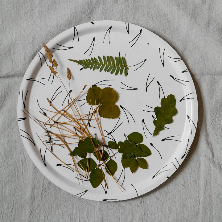 Barr on luonnon inspiroima sarja Fine Little Daylta, jossa metsän neulaset ovat keskiössä. Barr tarjotin Ø 38 cm on kaunis asetettuna keittiötasolle nojaten seinää vasten sisustuselementtinä ja samalla käytännöllinen aamupalan kantamiseen, kun mieli tekee syödä muualla kuin keittiön pöydän ääressä