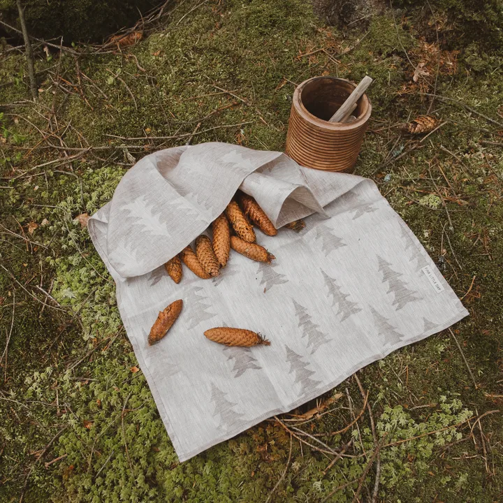 Gran-keittiöpyyhe tulee Fine Little Daylta ja se on valmistettu jakardikudotusta pellavasta. Elisabeth Dunkerin klassinen kuusikuvio on pyyheliinan toisella puolella vastakkaisissa väreissä. Pellavalla on erittäin hyvä imukyky ja miellyttävä rakenne.