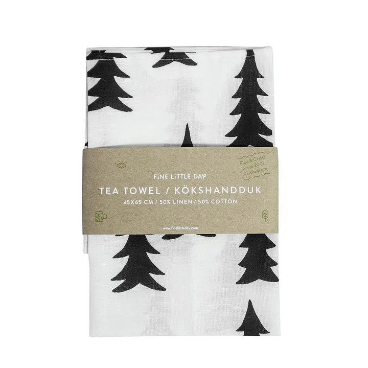 Fine Little Dayn Gran keittiöpyyhe antaa keittiöllesi mukavan metsäisen tuulahduksen. Reilun kokoinen pyyhe on pellavan ja puuvillan sekoitetta ja sen on suunnitellut Elisabeth Dunker. Pyyhe toimitetaan kauniissa pakkauksessa, joten se on myös kiva pikkulahja.