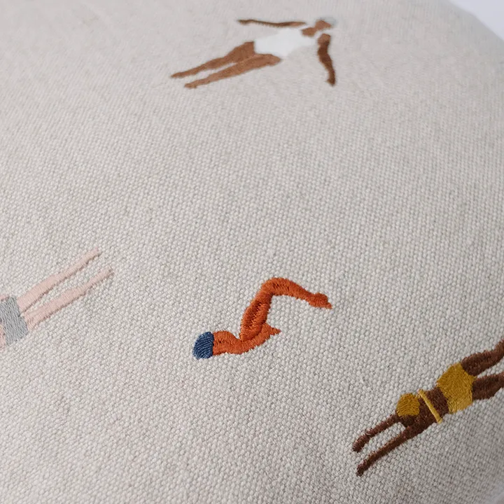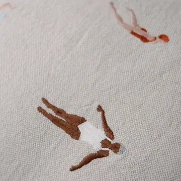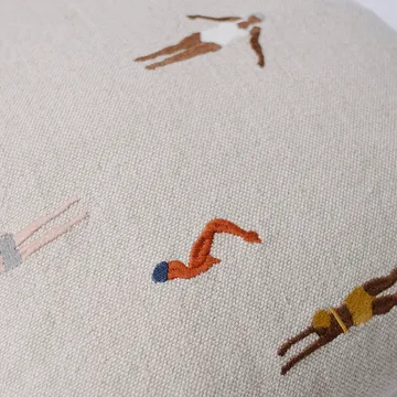 Swimmers tyynynpäällinen 48x48 cm Fine Little Daylta on ilmeikäs tyynynpäällinen, jonka on suunnitellut Elisabeth Dunker. Pehmeä, paksu valkaisematon pellavakangas on leikillisesti koristeltu pienillä uimareilla, jotka tuovat eloa sohvalle tai sängylle. Valmistettu luonnonmateriaaleista (70% pellavaa, 30% puuvillaa) ja siinä on piilotettu vetoketju pohjassa helppoa käsittelyä varten. Suosittelemme 50x50 cm sisätyynyä täyteläisyyden saavuttamiseksi.