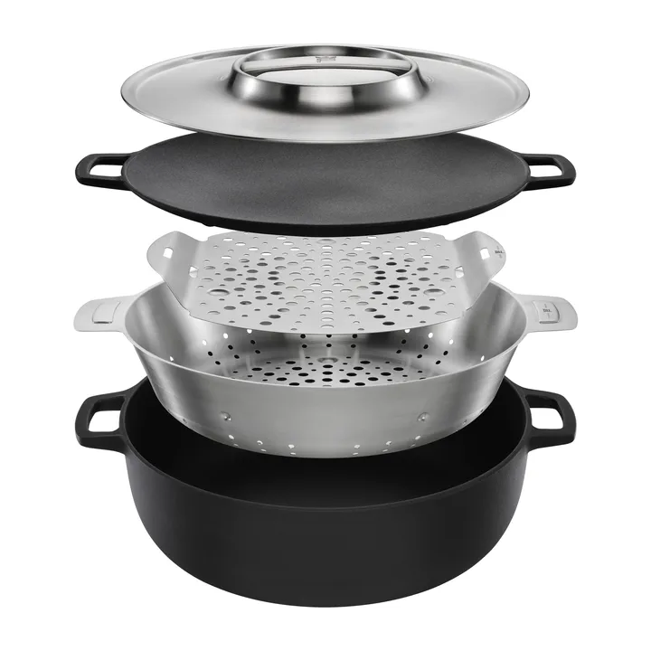 Norden 3-in-1 grillikori Fiskarsilta on yhdistelmäkori ja höyrytysosa, valmistettu ruostumattomasta teräksestä. Käytä sitä höyryttämiseen tai herkempien aineksien grillaamiseen – tai siivilänä. Yhdistä Grill Chef -kattilaan höyryttääksesi ruokaa yhdessä tai kahdessa kerroksessa, luonnossa tai kotikeittiössä. Norden Grill Chef -sarja yhdistää perinteisen pohjoismaisen retkiruoanlaiton moderniin elämäntyyliin