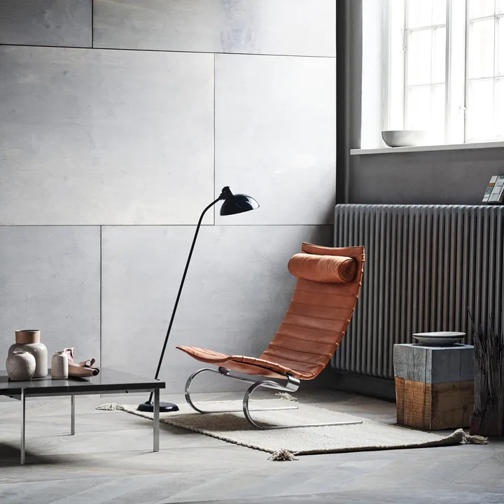 Kaiser Idell 6556-F lattiavalaisin Fritz Hansenilta on suunniteltu Christian Dellin toimesta ja sopii esimerkiksi viihtyisään nurkkaan makuuhuoneessa tai sohvan viereen olohuoneessa. Majesteettisessa lattiavalaisimessa on ohut vino jalusta pyöreällä jalustalla ja ylhäällä minimalistinen varjostin. Lamppaa voi helposti kallistaa, jotta voit säätää valon suuntaa tilanteen mukaan – toimiva ja tyylikäs lamppu kaikenlaiseen käyttöön!