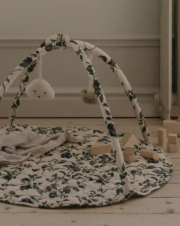 Luumu satiininen tikattu vauvajumppa-alusta Garbo&Friendsilta tarjoaa pehmeän ja turvallisen paikan lapsellesi leikkiä ja tutkia. Valmistettu ekologisesta puuvillasatiinista, tikattu aktiviteettimatto on sekä kestävä että mukava. Irrotettavat kaaret, jotka kiinnittyvät tarranauhalla, voidaan varustaa leluilla interaktiivista leikkiä varten. Mattoa voidaan myös käyttää erikseen leikkimattona, kun lapsi kasvaa.
