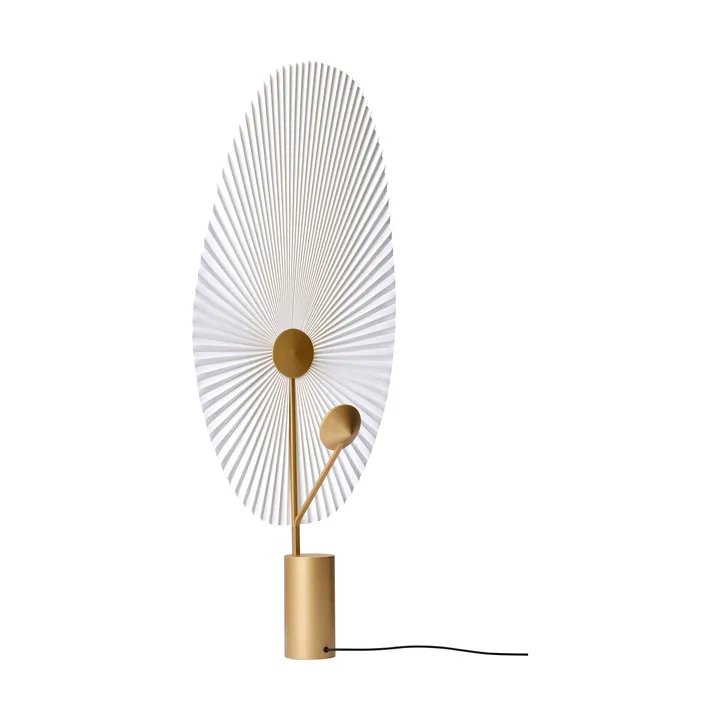 Liris lattiavalaisin Gejstiltä on moderni mestariteos, valmistettu elegantista mustasta tai messingistä. Tämä design-ikkuna muistuttaa antiikin Roomaa suurilla lehdillään tai tuulettimen kaltaisilla muodoillaan. 2 metrin pituisella johdolla ja päälle/pois-painikkeella, jossa on himmennystoiminto, Liris on täydellinen luomaan tunnelmavalaistusta kotiisi. Käytä sitä olohuoneessa katseenvangitsijana sisustuselementtinä tai sijoita se lukukulmaan yhdistääksesi tyyli ja toiminnallisuus.