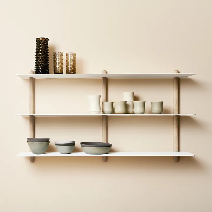 Nivo hylly D large tanskalaiselta Gejstiltä on suunnitellut Böttcher & Kayser, jotka ovat muotoilussa ajatelleet yhtä paljon hyllyn toimivuutta kuin sen muotoa. Minimalistinen kaksitasoinen seinähylly on tyylikäs, selkeillä linjoilla ilman näkyviä ruuveja. Hylly on sekä kaunis että käytännöllinen lisä esimerkiksi keittiöön tai olohuoneeseen