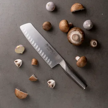 Global G-81 -vihannesveitsi oliivihiottu 18 cm:ssä on korkea terä ja nopea lopetus, mikä antaa sille tasapainon, jollaista hyvä vihannesveitsi tarvitsee. Terän erityinen oliivihionta estää myös elintarvikkeita tarttumasta veitsen pintaan yhtä helposti. G-81 on valmistettu CROMOVA 18 -ruostumattomasta teräksestä, joka on erittäin kovaa ja kulutusta kestävää. Kuten kaikki Globalin keittiöveitset, se on superterävä ja säilyttää terävyytensä niin kauan kuin huollat sitä.