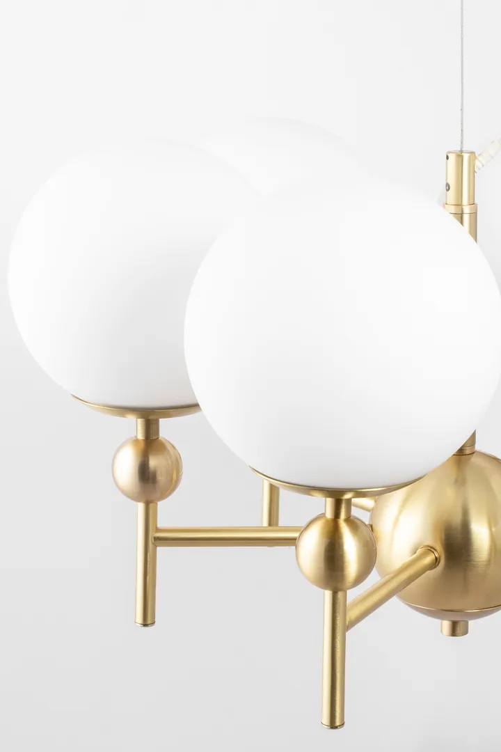 Astrid riippuvalaisin Ø 50 cm Globen Lightingilta on klassinen riippuvalaisin pehmeällä muotoilulla ja ajattomalla ilmeellä. Se levittää miellyttävää, vaimennettua valoa mattavalkoisen lasin ansiosta ja täydentyy yksityiskohdilla harjatun messingin värisestä metallista, jotka antavat lämpimän tuntuman. Sopii ruokapöydän, keittiösaarekkeen tai eteisen ylle, jossa haluat sekä toiminnallisuutta että kaunista sisustusta. Kestävä ja elegantti ratkaisu, joka kohottaa tilan ottamatta liikaa tilaa