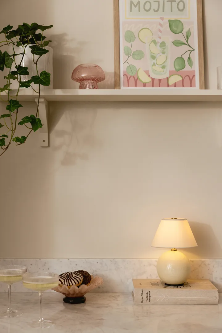 Iris 16 kannettava pöytävalaisin Globen Lightingiltä on valmistettu läpivärjätystä lasista, jossa on uniikkeja puhallettuja kuplia, ja siihen kuuluu saman sävyinen puuvillakupu, joka levittää pehmeän valon. Johtoton muotoilu tekee lampun ottamisesta mukaan helppoa – ikkunalaudalta parvekepöydälle. Kolmivaiheisella himmentimellä ja jopa kahdeksan tunnin akunkestolla Iris on joustava valonlähde, joka yhdistää klassisen muodon nykyaikaiseen toiminnallisuuteen ja persoonalliseen luonteeseen