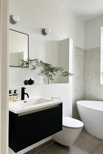 Torrano seinävalaisin/kattolamppu 13 cm by Globen Lighting on valmistettu vihreästä marmorista ja mattavalkoisesta lasista, mikä antaa jokaiselle lampulle ainutlaatuisen luonteen. IP44-luokituksen ansiosta se sopii kosteisiin tiloihin kuten kylpyhuoneeseen ja sen voi asentaa sekä seinälle että kattoon. Aseta se peilin viereen, kattoon tai luo koristeellinen kokonaisuus useammalla lampulla persoonallisen ilmeen saavuttamiseksi. Torrano yhdistää ajattoman eleganssin käytännölliseen toimivuuteen ja marmoroinnin luonnolliseen vaihteluun