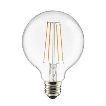 Valonlähde E27 LED-lamppu 100 3-vaiheinen himmennin Globen Lightingin valonlähde E27 LED-lamppu 100 on suunniteltu sopimaan täydellisesti yhdessä designyrityksen valaisimien kanssa. Koristeellinen lamppu on valmistettu kirkkaasta lasista, ja siinä on näkyvät filamentit tyylikkäässä kolmionmuodostelmassa. Antaa pehmeän, lämpimän valkoisen valon, joka on himmennettävissä kolmessa eri tasossa