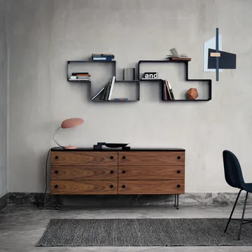 62 Dresser -lipasto by GUBI on tyylikäs lipasto, jonka on suunnitellut Greta Grossman ja joka yhdistää terävän suorakaiteen muodon keveisiin, ohuisiin jalkoihin ja pallomaisiin jalkoihin. Se ilmentää Grossmanin tuntemusta epätavallisista mittasuhteista ja huolitelluista yksityiskohdista, jotka antavat huoneelle sekä luonnetta että tasapainoa. Täydellinen makuuhuoneeseen tai eteiseen, jossa se toimii sekä säilytyskeskuksena että kauniina huonekaluna. Ajaton yksityiskohta, joka kohottaa sisustusta ja tarjoaa käytännöllistä säilytystilaa ilman raskautta