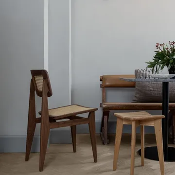 C-Chair tuoli GUBI:lta on ajaton klassikko, jonka on suunnitellut Marcel Gascoin. Sen juuret ulottuvat vuoteen 1947 ja se kantaa huolellisesti mietittyä muotoilua, joka yhdistää yksinkertaisuuden ja toimivuuden — täydellinen koteihin, joissa tila on arvokas. Tuoli on taiten muotoiltu yksityiskohtiin ja kestävään rakenteeseen panostaen, mikä tekee siitä yhtä käyttökelpoisen ruokapöydän ääressä kuin pienemmissä lukunurkkauksissa. Muoto tuntuu sekä lämpimältä että käytännölliseltä, suunniteltu arjen tarpeisiin mutta selkeällä muotoiluidentiteetillä, joka nostaa kotisi ilmettä