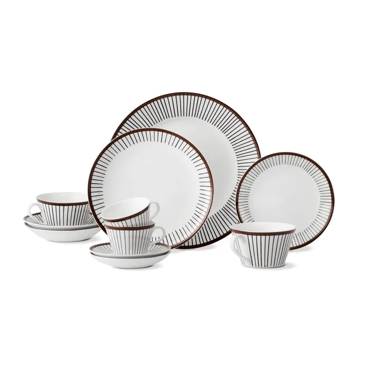 Tarjoile iltapäiväteetä ikonisesta Ribb teekupista, johon kuuluu myös yhteensopiva aluslautanen. Tämä Stig Lindbergin suunnittelema setti tulee ruotsalaiselta Gustavsbergs Porslinsfabrikilta. Ribb-sarja, jota aiemmin tunnettiin nimellä Spisa Ribb, lanseerattiin suuressa kotitalousnäyttelyssä Helsingborgissa vuonna 1955 ja se on ollut tuotannossa kaksi kertaa, ensin vuosina 1955-1974 ja myöhemmin vuodesta 2003 alkaen. Teekuppi, kuten sarjan muutkin osat, valmistetaan käsityönä laadukkaasta luuposliinista ja niissä on tyylikäs ruskea ja valkoinen raitakuosi, joka on tämän retron sarjan tunnusmerkki.
