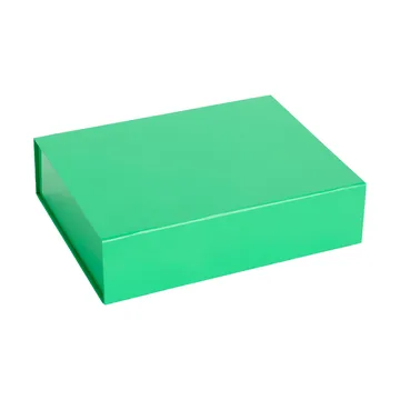 Colour Storage S kannellinen laatikko 25,5x33 cm tanskalaiselta HAYlta on säilytyslaatikko, jossa on mukana tuleva kansi. Tyylikäs kartonkinen laatikko sopii esille jätettäväksi ja auttaa pitämään vaatekaapin järjestyksessä, sillä erikokoisilla ja -värisillä laatikoilla voit erotella tavarat kätevästi. Kansi on integroitu laatikkoon ja avautuu sekä sulkeutuu magneetilla.