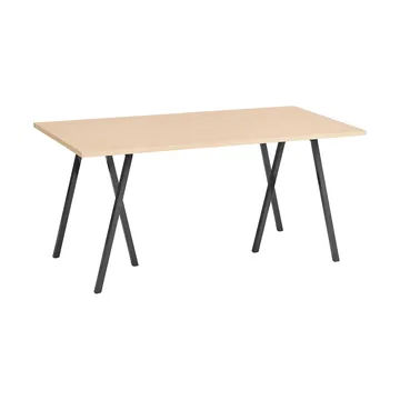 Loop Stand incl. support ruokapöytä 77,5x160 cm HAYlta on Leif Jørgensenin suunnittelema. Pöytää luonnehtii suorakulmainen pöytälevy sekä kolmijalkaiset pukit, jotka luovat graafisen ilmeen. Saatavilla useissa kooissa, materiaaleissa ja väreissä