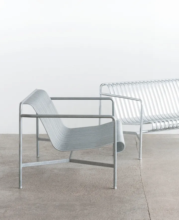 Palissade Low lepotuoli from HAY on osa Palissade-kokoelmaa, jonka ovat suunnitelleet Erwan ja Ronan Bouroullec. Tämä ulkokaluste yhdistää ajattoman eleganssin ja kestävän rakenteen, mikä tekee siitä täydellisen sulautumaan kaikkiin ulkotiloihin. Lepotuoli tarjoaa sekä mukavuutta että tyyliä, joten se on ihanteellinen paikka rentoutumiseen puutarhoissa, terasseilla tai parvekkeilla. Muotoilu tasapainottaa toiminnallisuuden ja estetiikan; saat kalusteen, joka pysyy kauniina säässä kuin säässä. Luo oma keitaasi tällä ikonisella tuolilla!