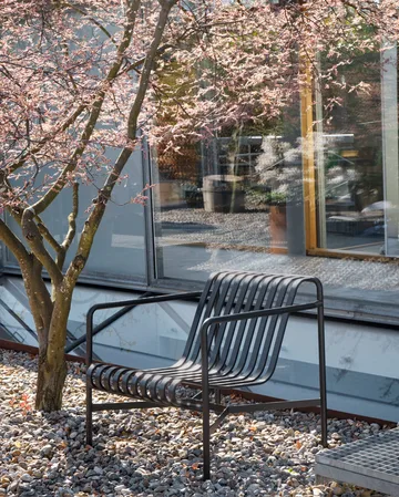 Palissade Low lepotuoli from HAY on osa Palissade-kokoelmaa, jonka ovat suunnitelleet Erwan ja Ronan Bouroullec. Tämä ulkokaluste yhdistää ajattoman eleganssin ja kestävän rakenteen, mikä tekee siitä täydellisen sulautumaan kaikkiin ulkotiloihin. Lepotuoli tarjoaa sekä mukavuutta että tyyliä, joten se on ihanteellinen paikka rentoutumiseen puutarhoissa, terasseilla tai parvekkeilla. Muotoilu tasapainottaa toiminnallisuuden ja estetiikan; saat kalusteen, joka pysyy kauniina säässä kuin säässä. Luo oma keitaasi tällä ikonisella tuolilla!
