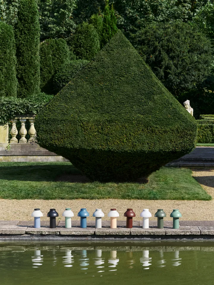 PC Portable No 2 pöytälamppu HAYlta on Pierre Charpinin suunnittelema ja sopii sekä sisä- että ulkokäyttöön. Lamppu on valmistettu 95 % kierrätysmuovista, kestää naarmuja ja siinä on piilotettu valonlähde himmennintoiminnolla tunnelma- tai kohdevaloon. USB-C-latauksen jälkeen akku kestää vähintään 10 tuntia täydellä latauksella.
