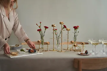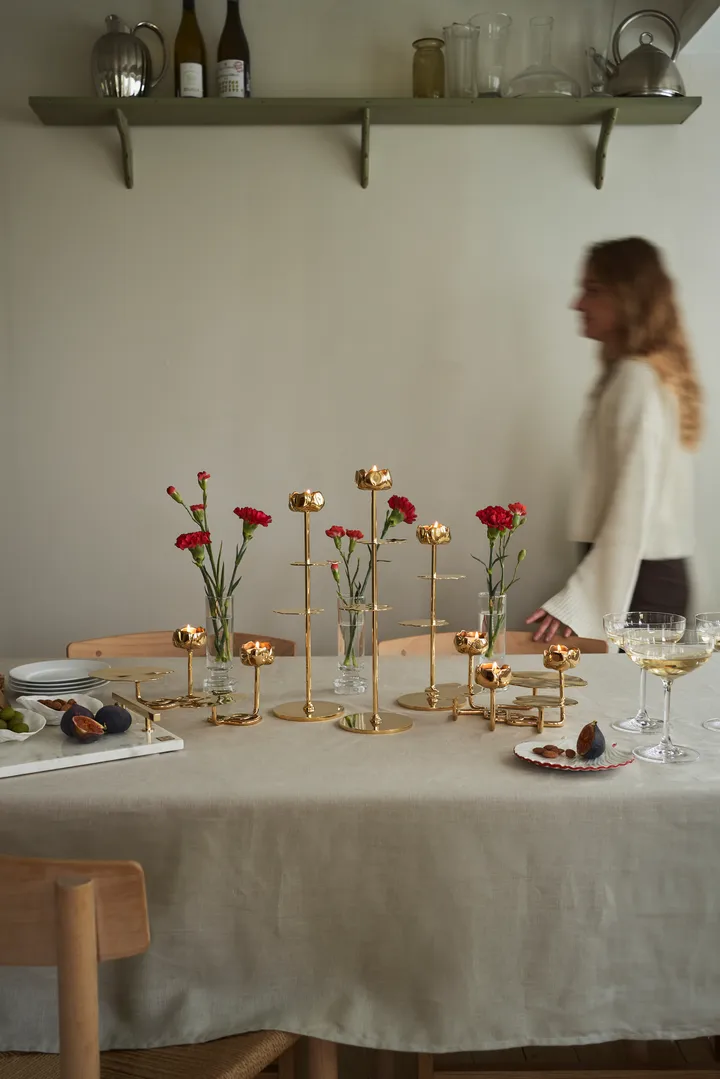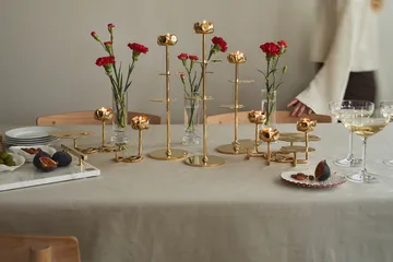 Ninfea Alta kynttilänjalka 40 cm Hilke Collectionilta on valmistettu messingistä ja muotonsa on saanut luonnosta. Auringonsäteet ja lumpeen lehdet kohtaavat tässä kynttilänjalkassa, jossa orgaanisen ja teollisen kontrastit syntyvät. Vedenpinnan alla näkyy lineaarinen juuristo, joka heijastuu kynttilänjalan muotoilussa