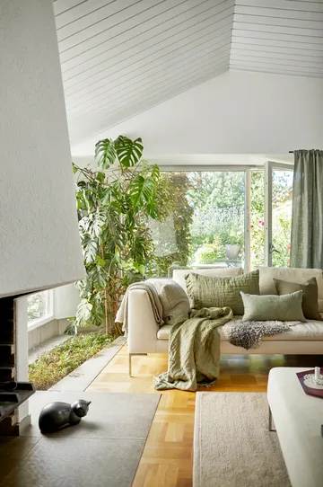 Hannelin huopa ruotsalaiselta Himlalta on pehmeä ja viileä, ja se on valmistettu sataprosenttisesta pellavasta. Huovan pitkät sivut on viimeistelty ompelemalla ja sen päädyissä on hapsut. Huopa on rypytetty, mikä näyttää yhtä hyvältä sängyllä tai sohvalla kuin ulkohuonekalujen kanssa. Valitse eri värejä ja yhdistä muihin Himlan pellavatekstiileihin.