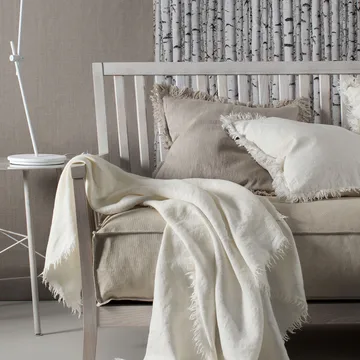 Merlin tyynyliina 50x50 cm Himlalta on kaunis pellavatyynyliina, jossa on kudottuja villalankoja ja pehmeä melange-ilme. Runsaat hapsut reunassa luovat liikettä ja yksityiskohtaisuutta, joka kohottaa sohvan tai sängyn ilmettä. Merlin sopii täydellisesti sekä olohuoneeseen että makuuhuoneeseen ja sitä voi yhdistellä saman sarjan torkkupeiton kanssa lämpimän ja kodikkaan tunteen luomiseksi. Sisätäyte ei sisälly tuotteeseen