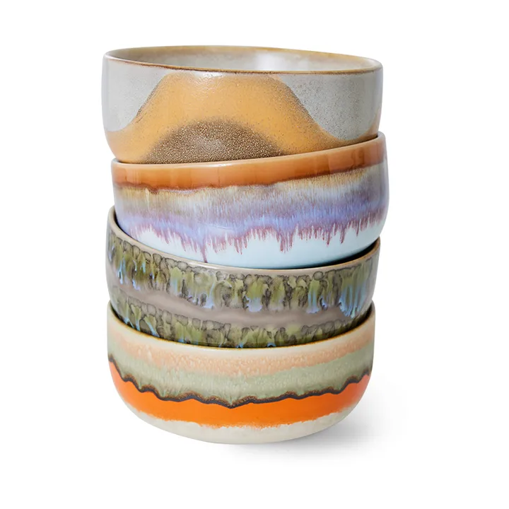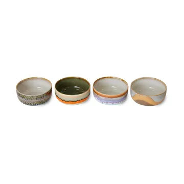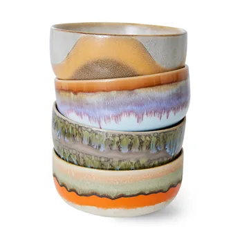 70-luvun jälkiruokakulho 4 osaa HKlivingiltä tarjoaa jännittäviä kuvioita, joita voi käyttää sekä erikseen että yhdessä. Jälkiruokakulhot ovat osa HKlivingin suosittua 70-luvun sarjaa ja voivat joko olla ensimmäiset sarjan tuotteet kotiisi tai täydentää sarjakokoelmaa. Ehkä täydellinen lahja? Kulhot sopivat hyvin oliiveille, dippikastikkeille ja herkullisille kastikkeille niiden koon puolesta.