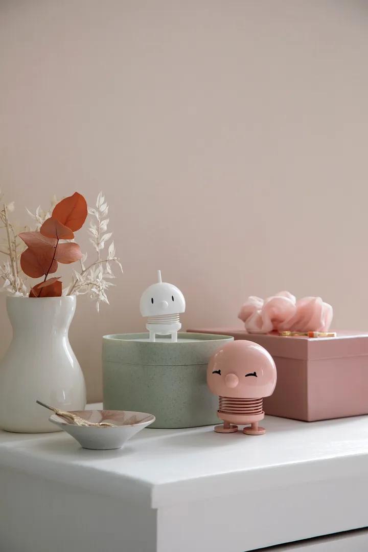 Hoptimist Bumble S figuuri tanskalaiselta merkiltä Hoptimist on ikoninen ilon tuoja. Sen pyöreän ja harmonisen ilmeen myötä se levittää optimistisuutta ja iloa jokaiseen huoneeseen ja ympäristöön. Hoptimist-figuurit suunnitteli Gustav Ehrenreich 1960-luvulla muistutuksena pysyä positiivisena ja optimistisena, ja Hoptimistista tuli osa tanskalaista designhistoriaa. Bimble ja Bumble edustavat ensimmäisiä Hoptimisteja suunnittelijan käden jäljiltä. Nämä iloiset hahmot levittävät iloa ympäri maailman. Neljällä eri koolla ja laajalla värivalikoimalla on Hoptimist joka tilanteeseen ja henkilölle. Levitä iloa Hoptimistilla!