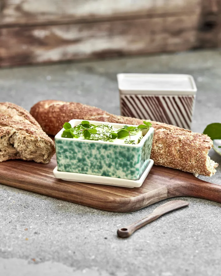 Diva säilytyslaatikot 2 osaa House Doctorilta ovat setti kahta käsinmaalattua kivikeramiikkalaatikkoa taiteellisilla kuvioilla. Nämä pinottavat laatikot ovat täydellisiä voin, välipalojen tai pienten vihannesten säilytykseen ja tuovat koristeellisen kosketuksen keittiöön