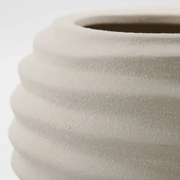 Happ ruukku Ø23 cm merkiltä House Doctor on valmistettu savesta ja siinä on uurteinen viimeistely, joka antaa rakennetta. Tämä käsintehty ruukku on rustiikkisen näköinen ja hieman epäkeskeinen avaus. Täydellinen sijoittamaan rehevän kasvin kahvipöydälle, sivupöydälle tai hyllylle tuomaan luonnollista tunnelmaa sisustukseen.